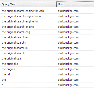 You’ll notice that in my screenshot, I have a host name of duckduckgo.com. This is the largest search engine provider that emphasizes protecting searchers’ privacy. DuckDuckGo is known for not tracking your activity or your browsing history. They are also ad free. They do not track IP addresses, so they don’t keep track from session to session what you searched on previously.