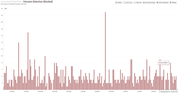 Your computers, without your knowledge (unless you have specialized tools), are fending off thousands of attacks a week. Not a few. Not hundreds. But quite literally thousands of attempts! To illustrate, the below chart is the Intrusions detected on a home network during a 6-hour window. To catch these threats, the tool is using about 35,000 intrusion protection rules as provided by Suricata which is powered by definitions from Emerging Threats (a company which exists to know and identify threats).